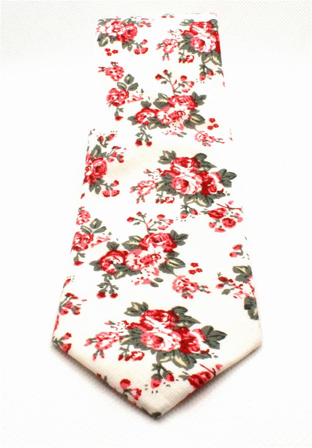 Ivan Troy White/Red Flowers Cotton Neckties