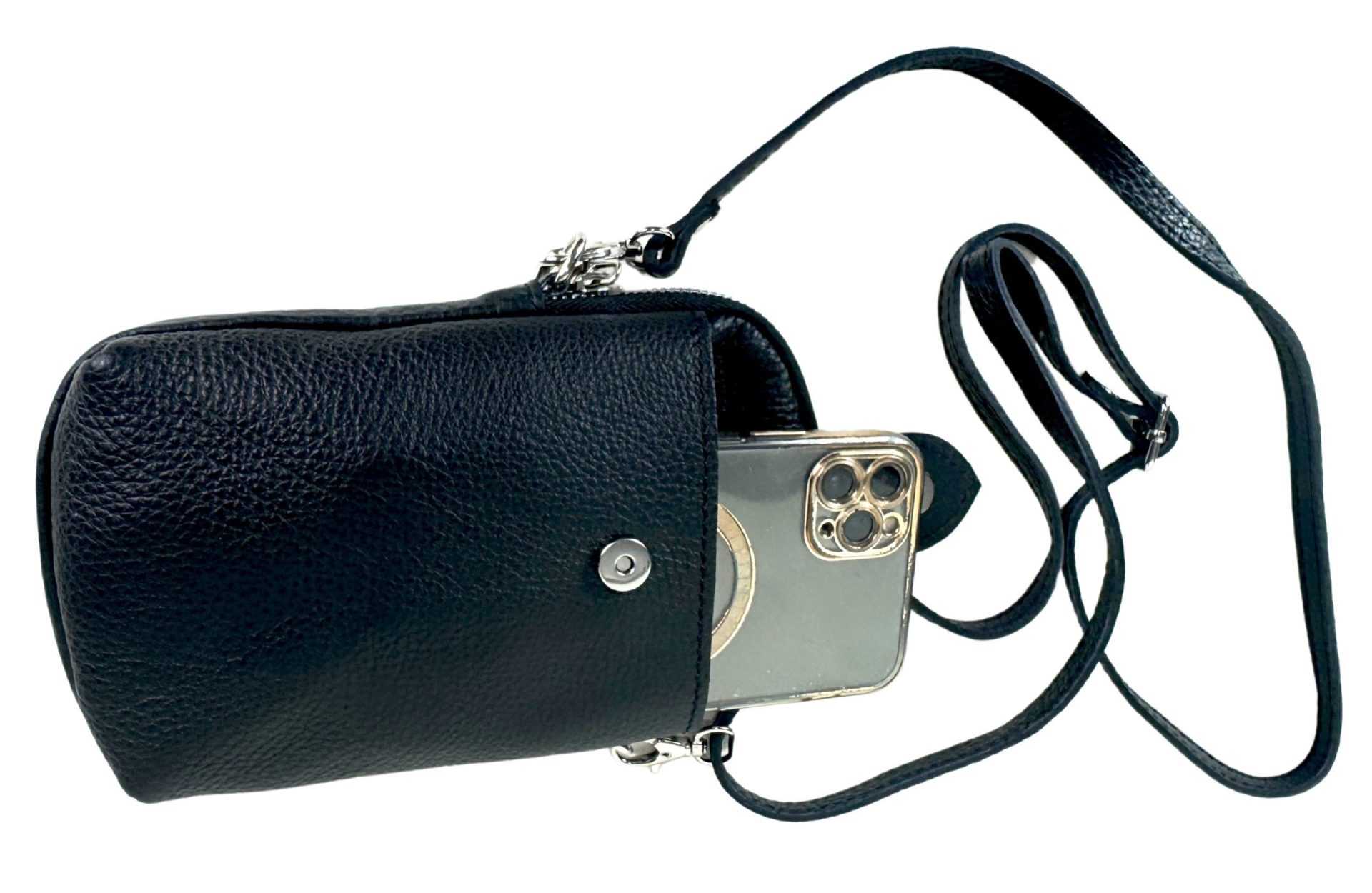 Women’s Phone Pouch Crossbody Handbag Designer Italian Leather – Balader Black